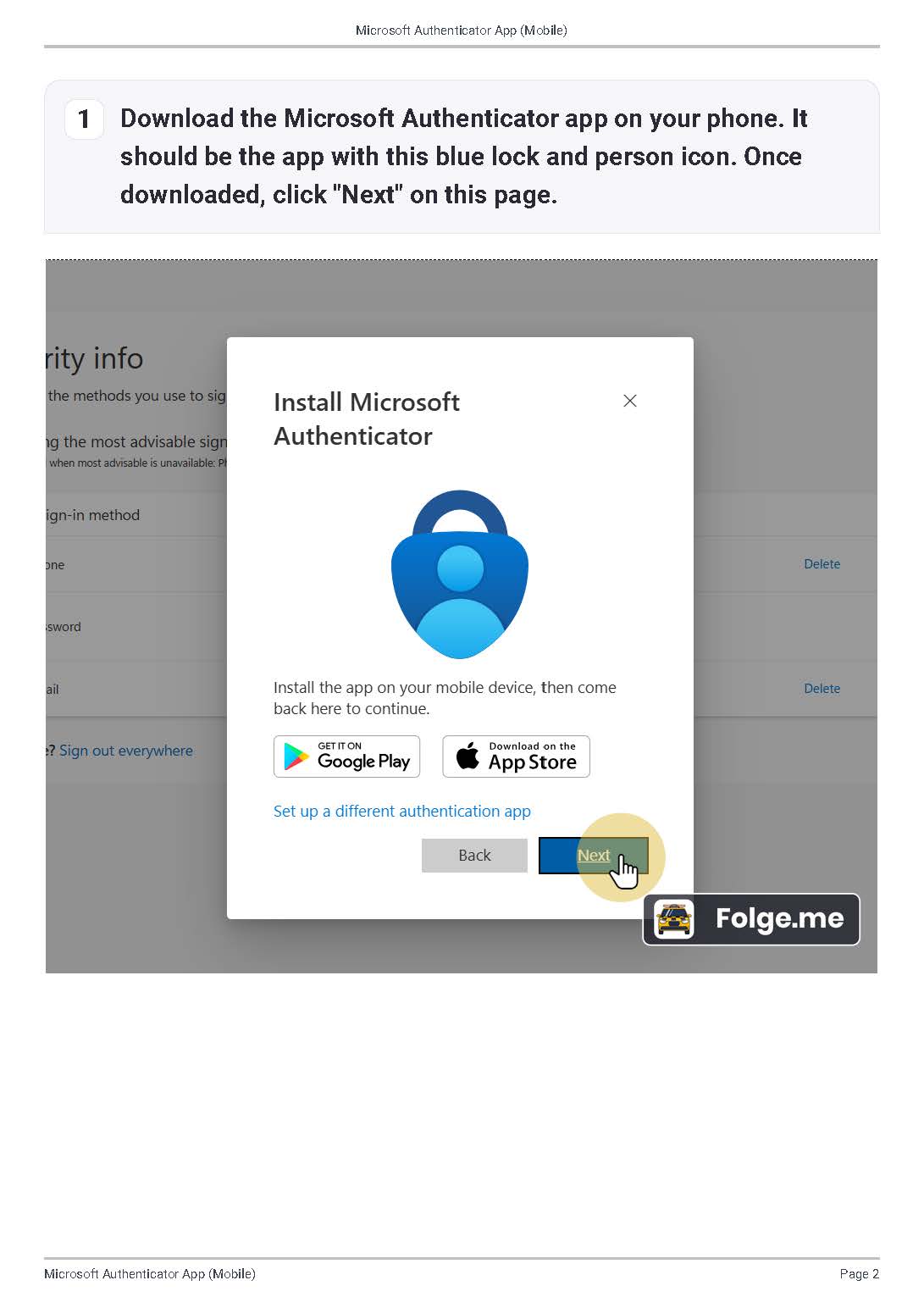 Below are instructions to set up the Microsoft Authenticator mobile app.