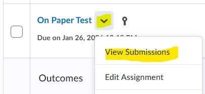 Begin by building a placeholder for the exam in the "Assignments" Tool. Click on the caret next to the name of the exam then "View Submissions"