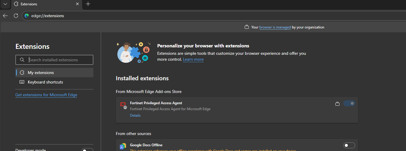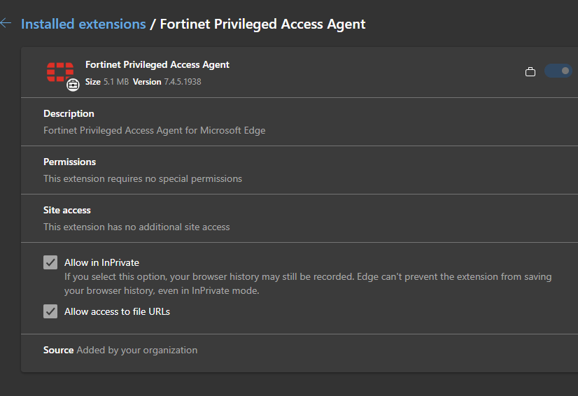 2. Find any extension that has the Title "Fortinet" or "Forticlient" in it and select "Details."